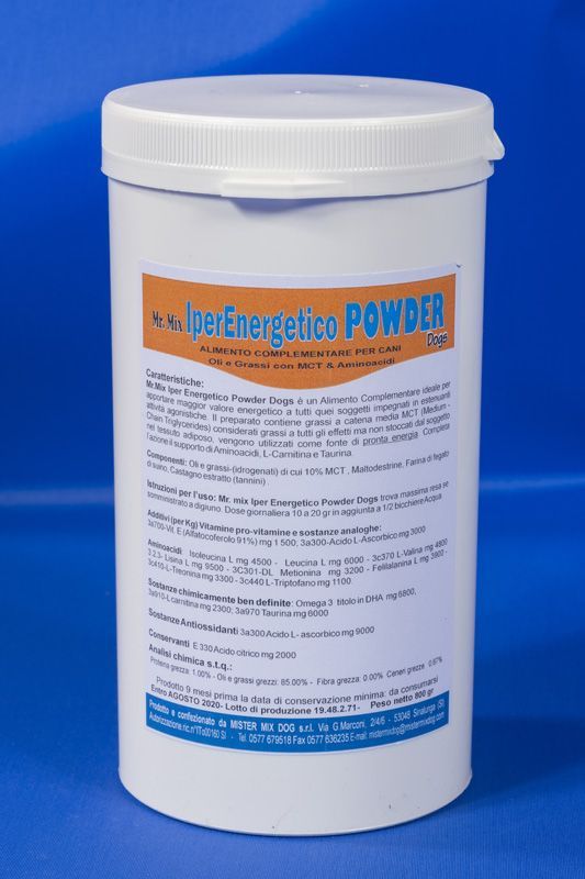 La Top Energy ha utilizzato l'esperienza di dietologi, tecnici e specialisti per raggiungere l'obiettivo: produrre un alimento composto integrato, completo, energetico e bilanciato di altissima qualità che fornisca tutte le sostanze nutritive essenziali per il fabbisogno ed il benessere dei cani, di tutte le taglie, che svolgono una normale o intensa attività fisica.